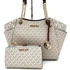 Michael Kors Large Jet Set Travel Chain Shoulder Bag & Double Zip Wallet Vanilla