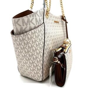 Michael Kors Large Jet Set Travel Chain Shoulder Bag & Double Zip Wallet Vanilla