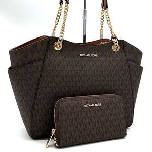 Michael Kors Large Jet Set Travel Chain Shoulder Bag & Flat Phone Case Wallet