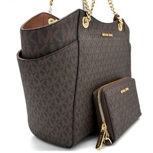 Michael Kors Large Jet Set Travel Chain Shoulder Bag & Flat Phone Case Wallet