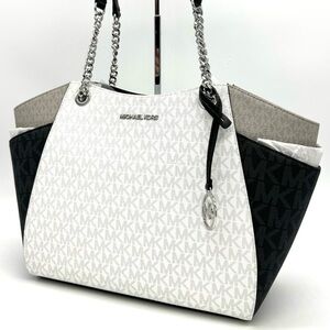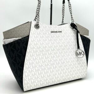 Michael Kors Large Jet Set Travel Chain Shoulder Bag Optic White Multi