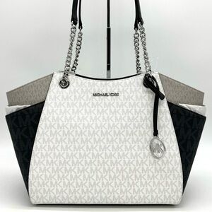 Michael Kors Large Jet Set Travel Chain Shoulder Bag Optic White Multi