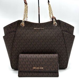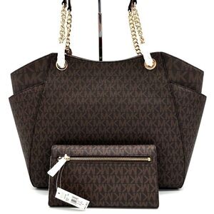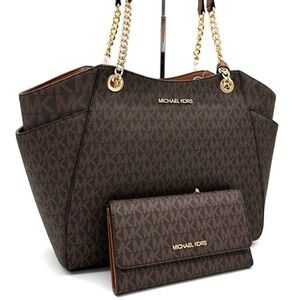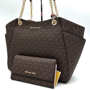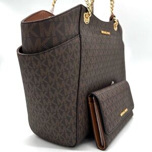 Michael Kors Large Jet Set Travel Chain Shoulder Bag & Trifold Wallet Brown