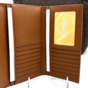 Michael Kors lettering logo on front Trifold wallet w/ snap button closure