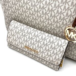 Michael Kors Large Jet Set Travel Chain Shoulder Bag & Trifold Wallet Vanilla
