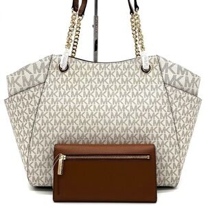 Michael Kors Large Jet Set Travel Chain Shoulder Bag & Trifold Wallet Vanilla