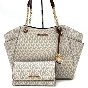 Michael Kors Large Jet Set Travel Chain Shoulder Bag & Trifold Wallet Vanilla