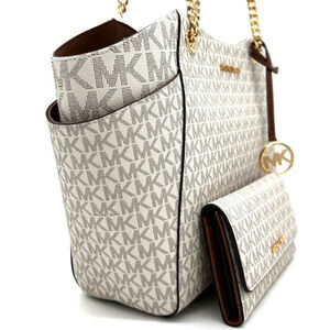 Michael Kors Large Jet Set Travel Chain Shoulder Bag & Trifold Wallet Vanilla