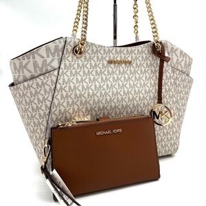 Michael Kors Large Jet Set Travel Chain Shoulder Bag & Double Zip Wallet Vanilla