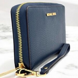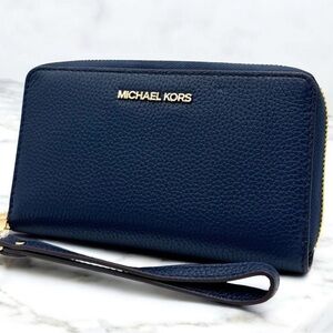 This wallet is a brand new, authentic Michael Kors Jet Set travel large flat multifunctional phone case/wallet. The Color is Navy Blue It features: