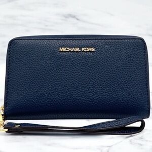 Michael Kors Large Jet Set Travel Flat MF Phone Case Wallet Navy Blue