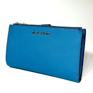 Michael Kors Large Jet Set Travel Logo Double Zip Wallet - Teal