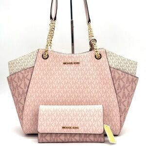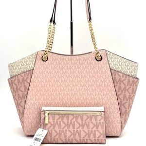 Michael Kors Large Jet Set Travel Shoulder Bag & Trifold Wallet Light Pink Multi