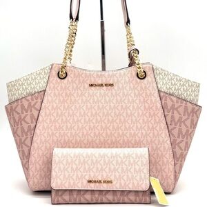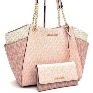 Michael Kors Large Jet Set Travel Shoulder Bag & Trifold Wallet Light Pink Multi