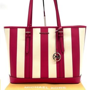Michael Kors Large Jet Set Travel TZ Shoulder Tote Bag Electric Pink Multi