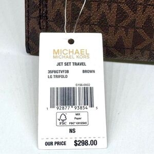 Michael Kors Large Jet Set Travel Trifold Wallet Brown Signature