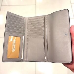 Michael Kors lettering logo on front Trifold wallet w/ snap button closure