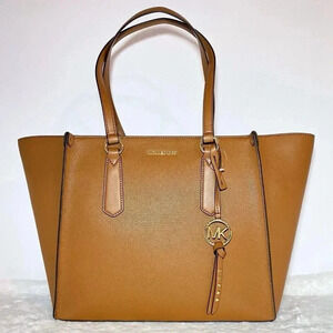 Michael Kors Large Luggage Brown Leather Kris Travel Career Work Tote Bag NWT