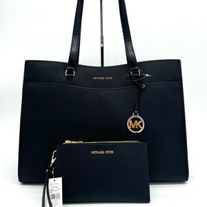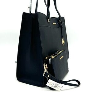 Michael Kors Large MF Pocket Shoulder Tote Bag & Double Zip Wallet Black/Gold