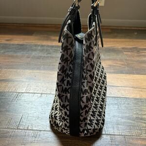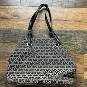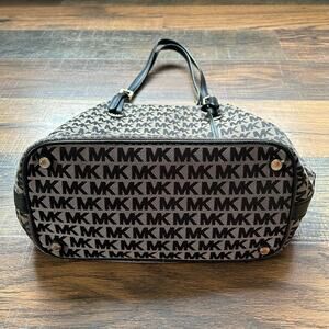 Michael Kors Large MK Logo Tote Shoulder Bag Brown Black Monogram Canvas Leather