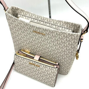 Michael Kors Large Messenger Bag & Large Double Zip Wallet Vanilla/Powder Blush