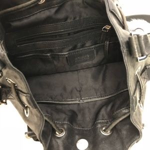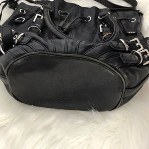 Beautiful black leather bag! Lots of awesome buckles to give it a biker look. Rare bag and in great condition. Some wear to leather- see photos.