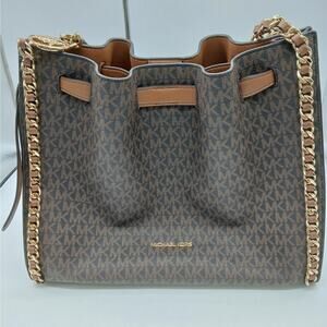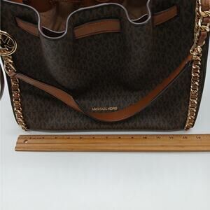 Michael Kors Large Mina Signature Logo Chain Shoulder Bag Handbag Teacher Brown
