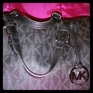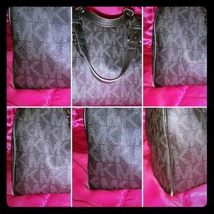 Beautiful Authentic Michael Kors Large Grayson Handbg Satchel. PVC leather with signature monogram and hanging charm included. Several pockets inside for convenience. Pre-owned in good condition, showing normal wear, mainly at the corners. Measures about 13"x 9"x 6". Perfect for everyday carry. Thanks for shopping! Bundle and save!