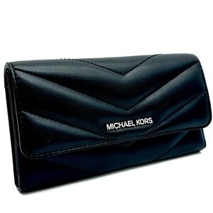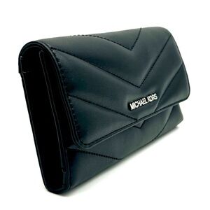 Michael Kors Large Quilted Trifold Wallet Black/Silver