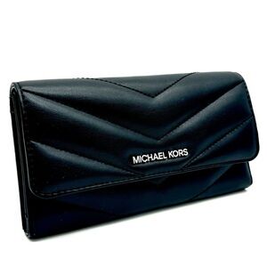 Michael Kors Large Quilted Trifold Wallet Black/Silver