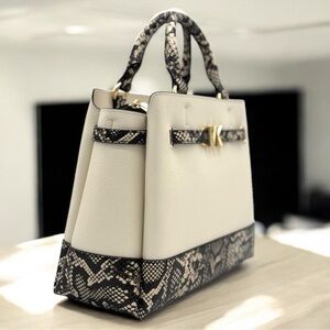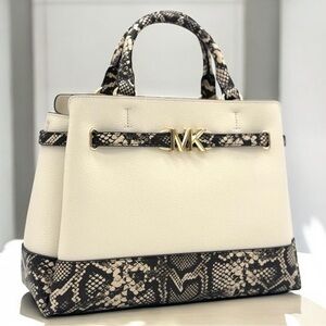 Michael Kors Large Reed CZ Belted Satchel Bag Light Cream Multi