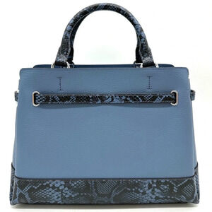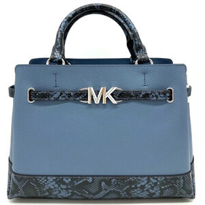 Michael Kors Large Reed Leather Belted Satchel Crossbody Bag Blue Snakeskin