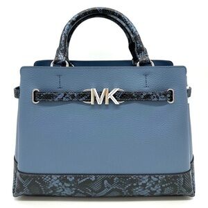 Michael Kors Large Reed Leather Belted Satchel Crossbody Bag Blue Snakeskin