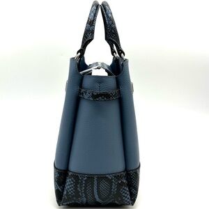 Michael Kors Large Reed Leather Belted Satchel Crossbody Bag Blue Snakeskin