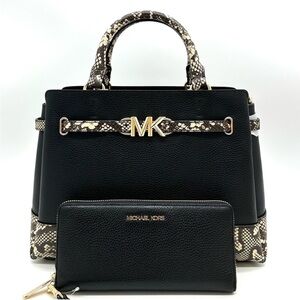 Michael Kors Large Reed Satchel Crossbody Bag & Large Continental Wallet Black