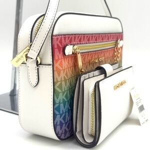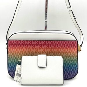 Michael Kors Large Signature Logo Crossbody Bag & Matching Bifold Wallet Rainbow
