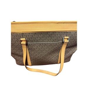 Keywords: Michael Kors, tote bag, handbag, purse, satchel, brown, monogram, signature, MK logo, shoulder bag, designer bag, everyday bag, work bag, travel bag