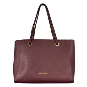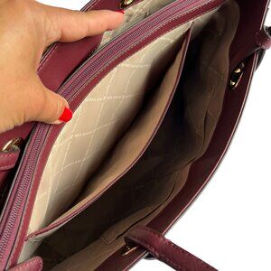 Michael Kors Large Tote Bag with zippered compartment for laptop, wine color.