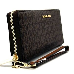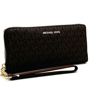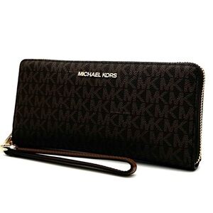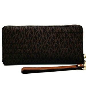 Michael Kors Large Travel Continental Wallet Wristlet Brown/Gold