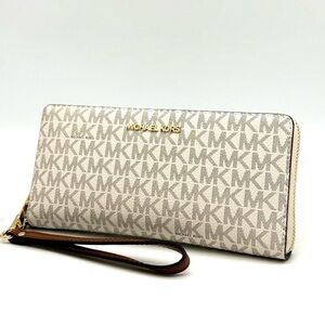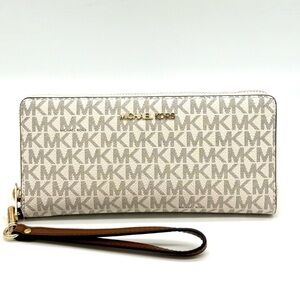 Michael Kors Large Travel Continental Wallet Wristlet Vanilla/Brown