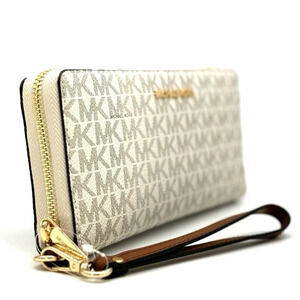 Michael Kors Large Travel Continental Wallet Wristlet NWT Vanilla/Brown