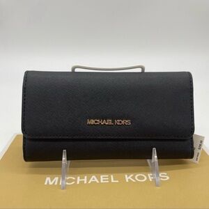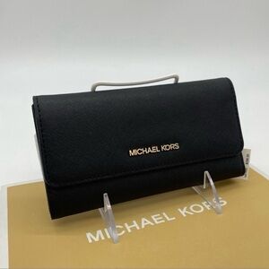 Michael Kors Large Trifold Wallet Black Leather Rich Black/Gold