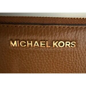 Michael Kors Large Zip Around Wristlet Continental Wallet Brown Pebble Leather