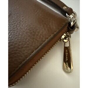 Michael Kors Large Zip Around Wristlet Continental Wallet Brown Pebble Leather. 8x 4. Nice,clean pre-owned condition. Some tarnish on front gold logo, please see pictures. Thank you!