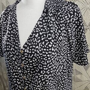 Michael Kors Large button down top with tie front. Black and white short sleeve