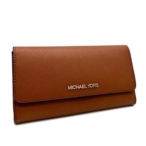 Michael Kors lettering logo on front Trifold wallet w/ snap button closure