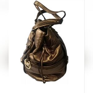 Michael Kors Lattington Large Tote Antique Brass Leather Handbag