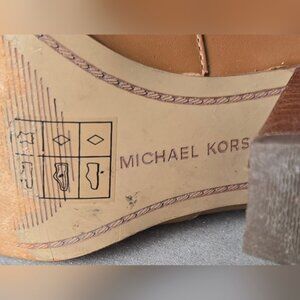 Michael Kors Leather Ankle Boots Women’s 7M Brown Block Heel Chelsea Booties MK