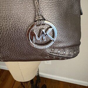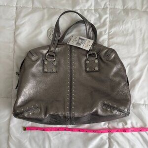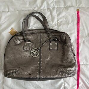 Michael Kors Leather Astor Studded Satchel Gunmetal Large Handbag