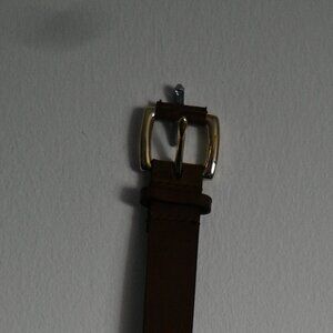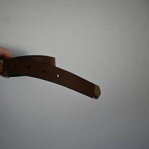 michael kors, leather belt, medium brown belt, gold buckle, gold tip, designer belt, like-new belt, dogwood and district closet, versatile accessory, classic style